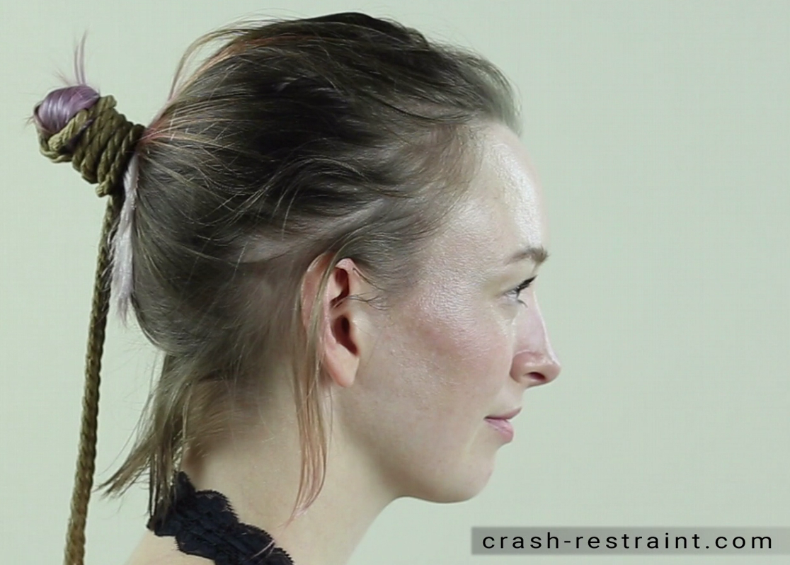Je continue sur ma série sur les tutoriels de bondage, car je crois que cela vous intéresse et m’intéresse également. Je vous propose aujourd’hui un tuto pour tenir votre soumise par les cheveux, voici ce que c’est sensé donner à la fin :