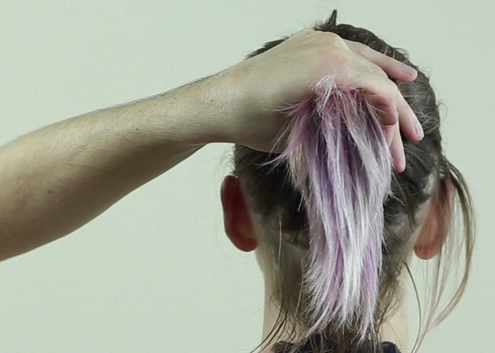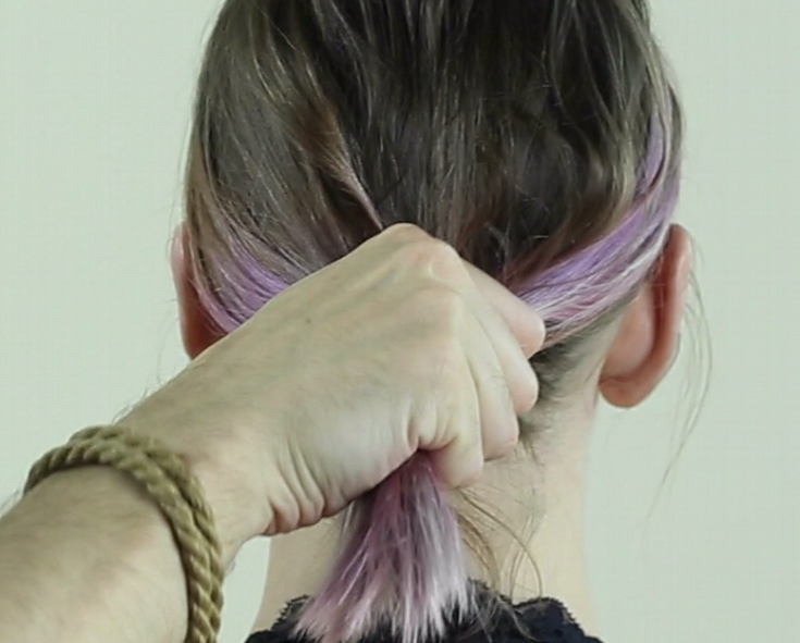 Bien serrer autour de la couette de cheveux formée.