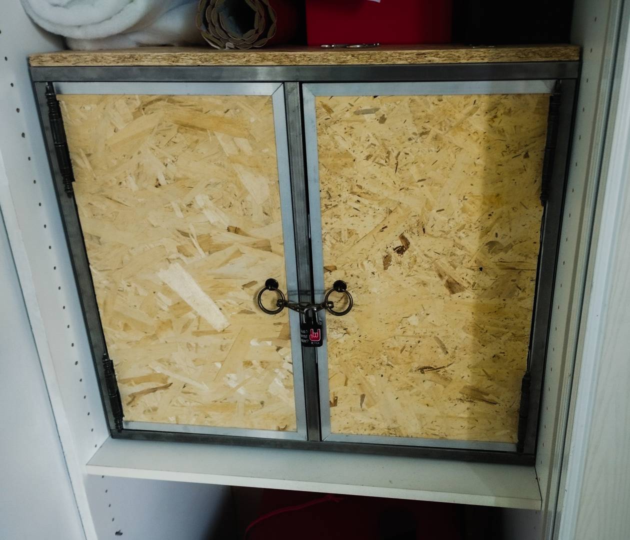 je finalise un meuble à jouets qui mixe structure acier et bois histoire de faire un truc plus sympa qu'une simple étagère dans le placard de la chambre accessible à n'importe qui.