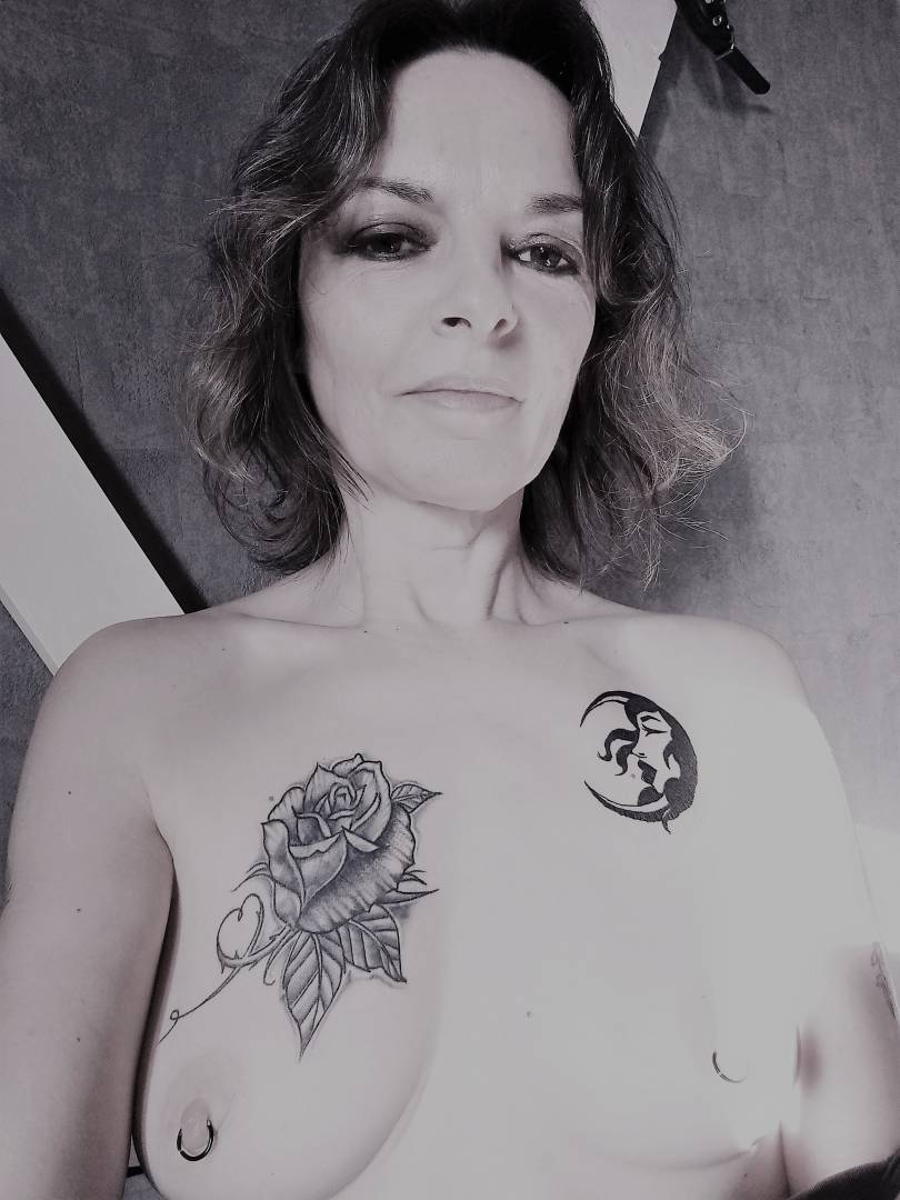 -Cet après-midi ma fille va réaliser un nouveau tatouage dessiné par elle,à priori sur mon sein droit.