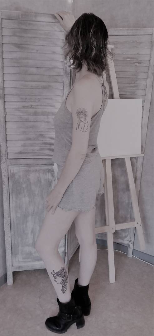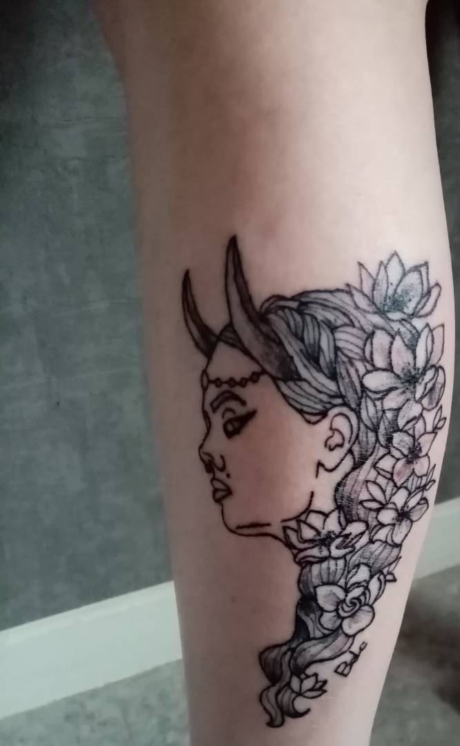 Nouveau tatouage une succube sur ma cheville gauche ,dessin de ma fille et tatoué par elle,l'autre jour.Elle n'a aucune formation elle s'entraîne sur mon corps et demain elle entame une formation de deux mois pour faire des piercings avec la fille qui m'a fait mes piercings aux tétons puis elle voudrait dans l'absolu faire des tatouages par la suite.