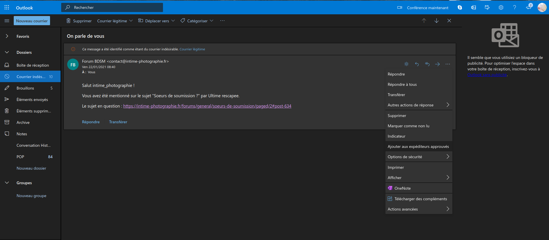 Sur hotmail c'est aller dans les indésirable, cliquer sur le courriel, puis sur les trois petits points en haut à droite, puis "ajouter aux expediteurs approuvés".