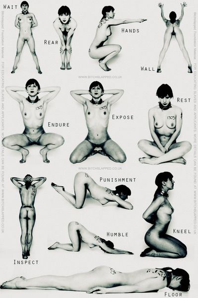 De part leurs fonctionnalités évidentes, certaines positions sont généralement utilisées pour des rôle précis : mettre un collier à une soumise se fera généralement à genoux ou debout les mains sur la tête. Tandis que pour lui fouetter le cul, je préfère qu’elle soit penchée ou en tout cas, dos à à moi.