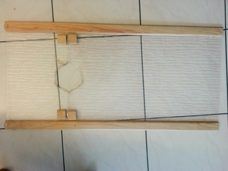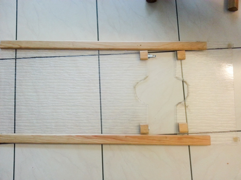 Deux rails en bois tiennent le tout, ils sont lié à la plus grande partie. Afin d’éviter d’éclater le plastique, j’ai chauffé avec un chalumeau de cuisine avant de percer. Je chauffais également la vis.