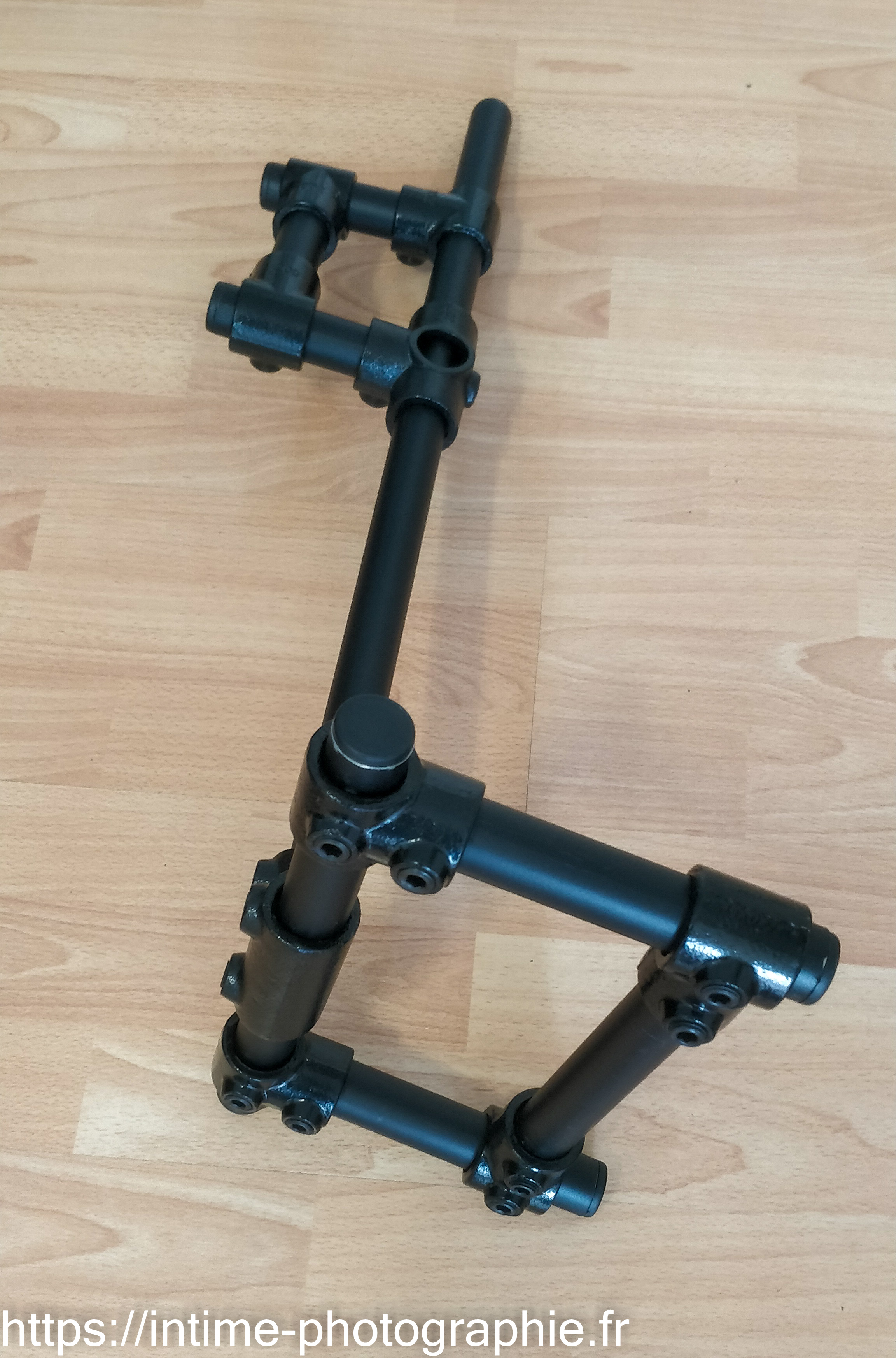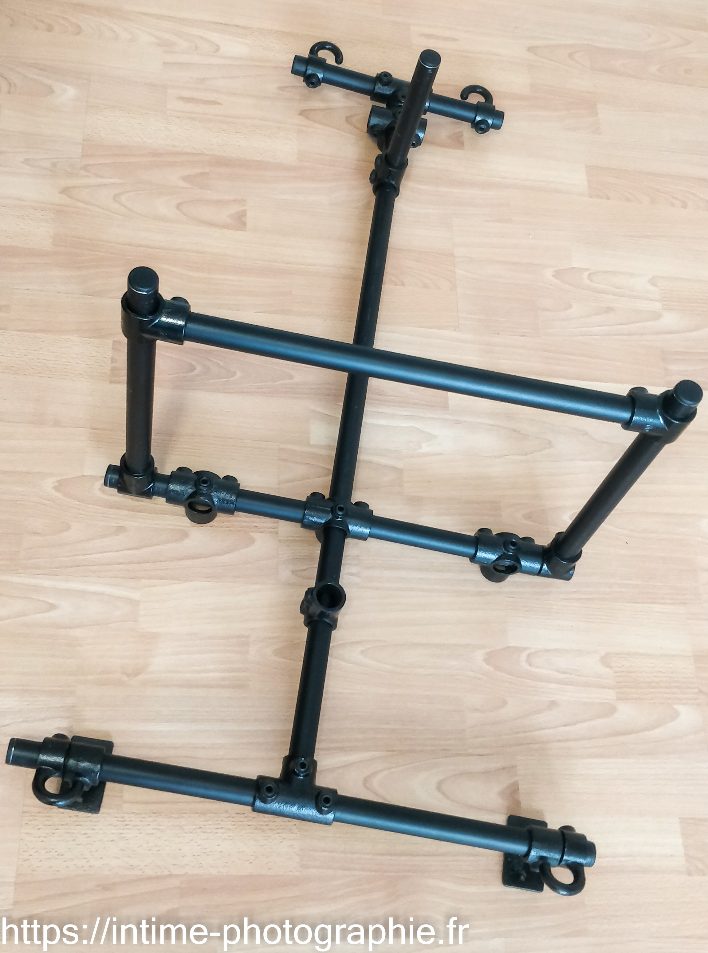 Nous voyons ici la boucle initiale, les 2 brins qui sont le long du bambou, le passage du brin court sous le brin long et enfin un premier tour du bambou avec le brin court.